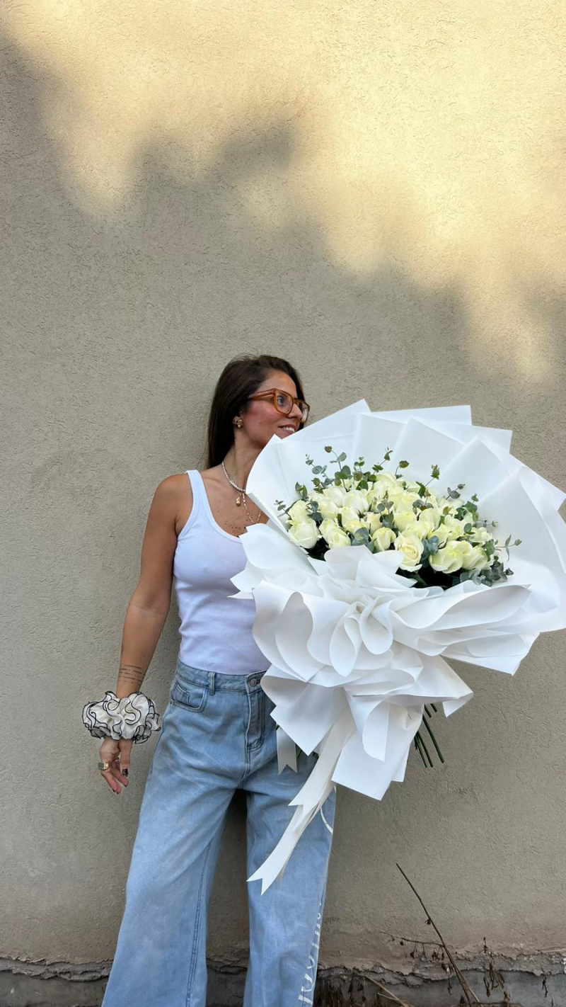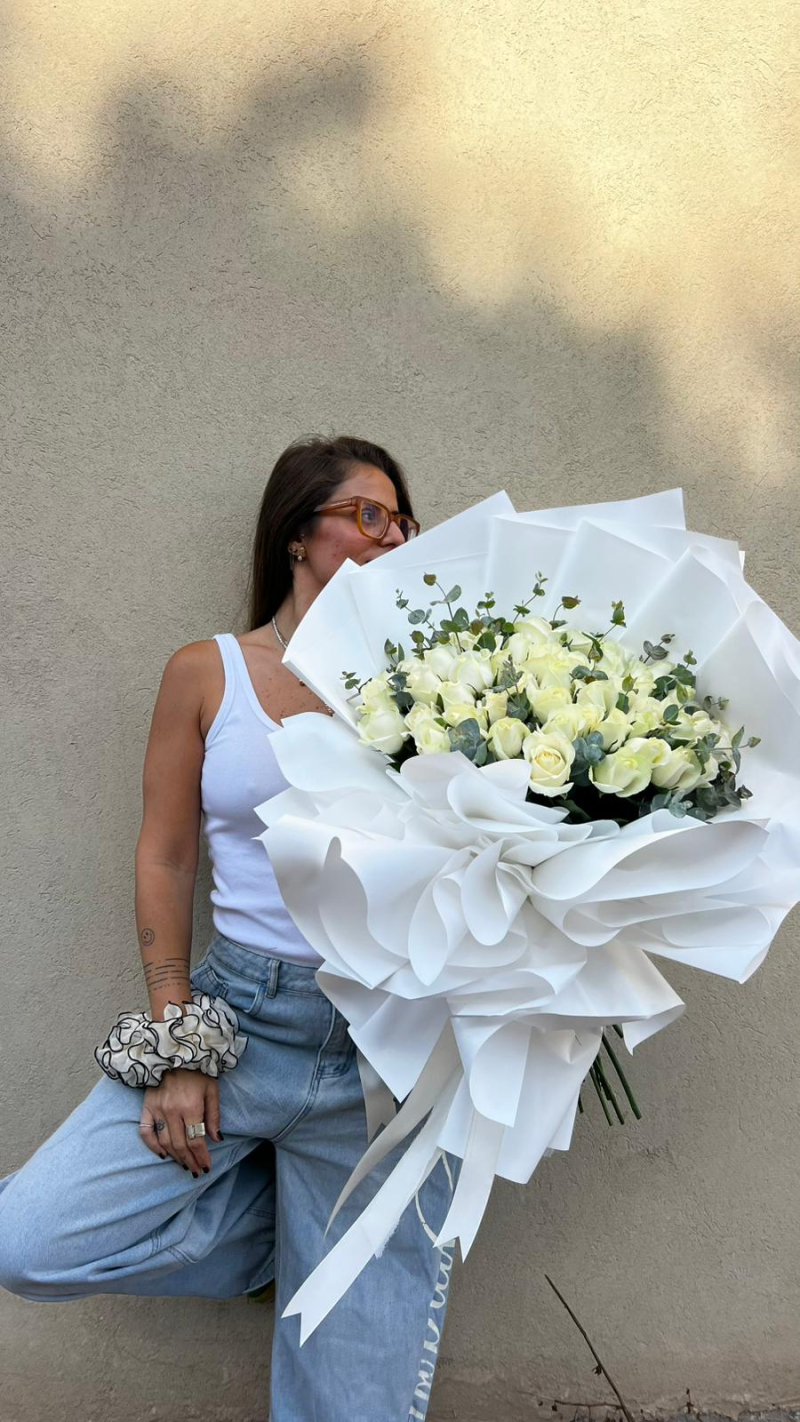 זר 60 ורדים בשילוב ירק