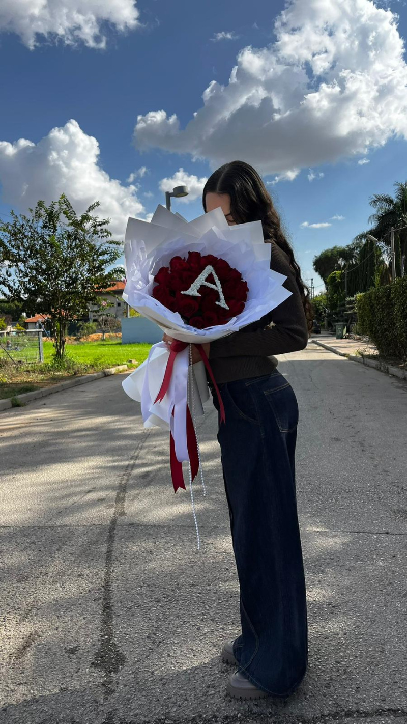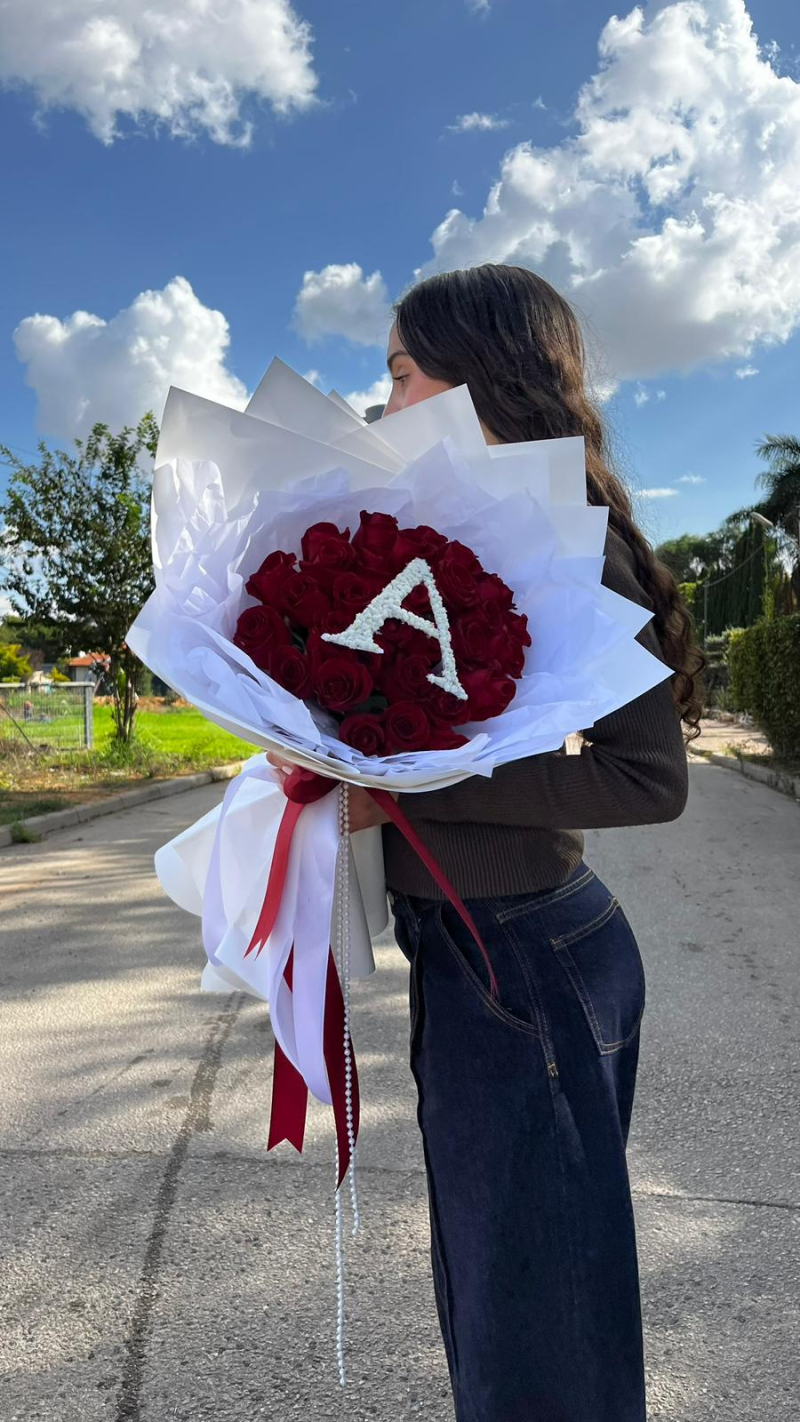 זר ורדים המורכב מ30 ורדים ואות לבחירה מגיבסנית