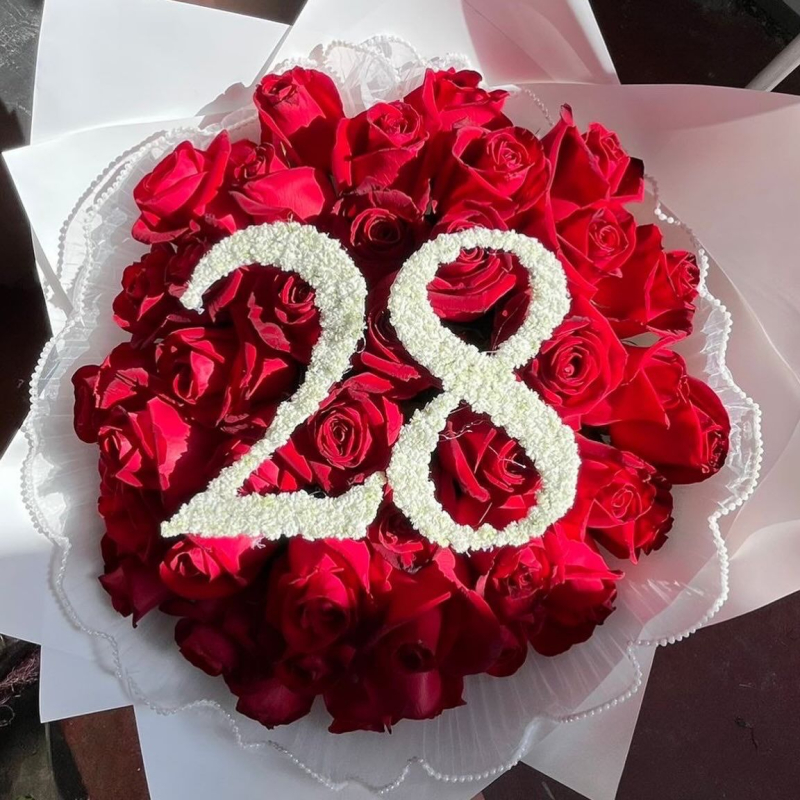 זר 40 ורדים ואות בשילוב גיבנסית