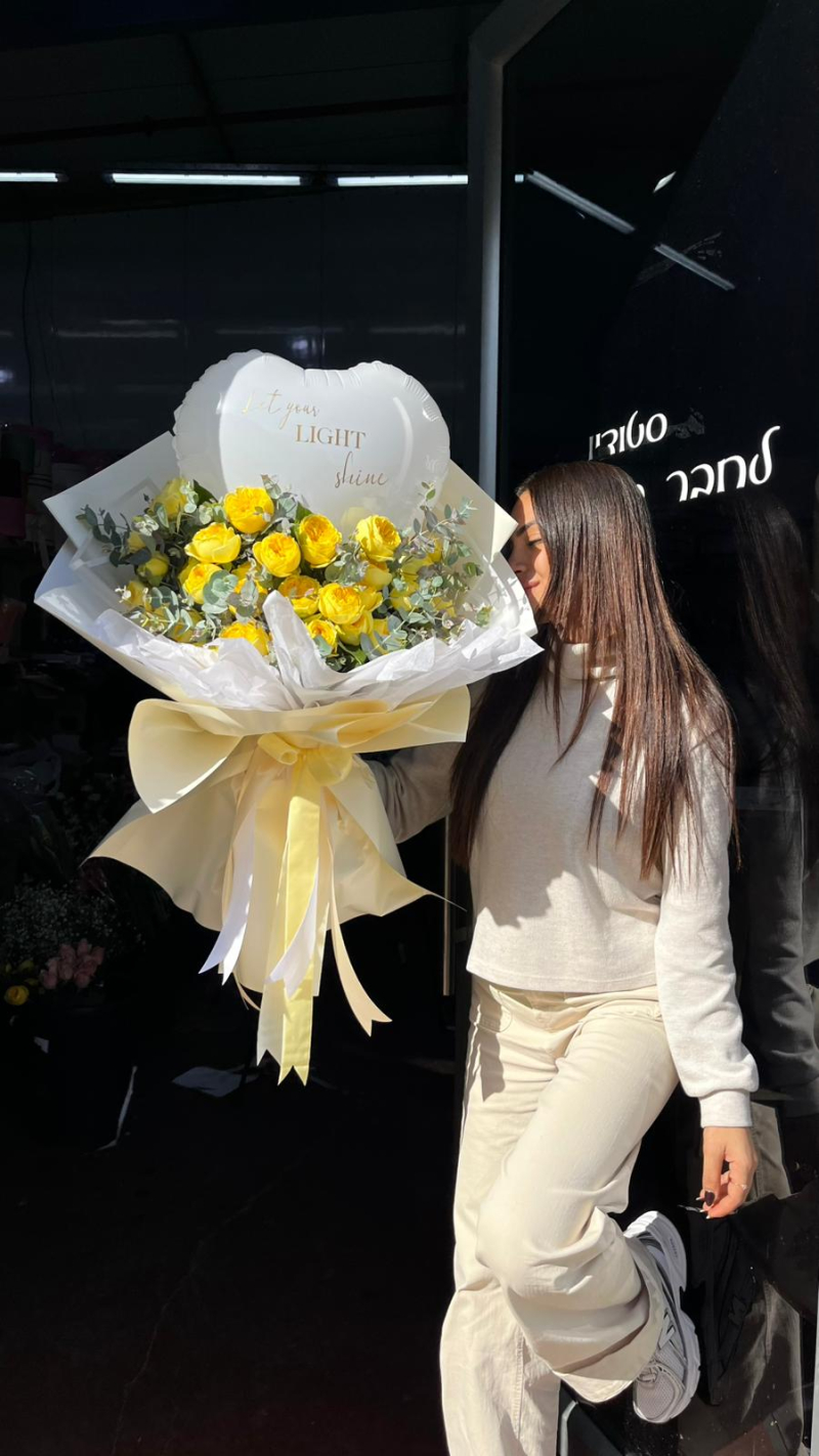 זברלון יוקרתי המורכב מורד אנגלי יוקרתי ואקליפטוס ניתן לשנות את הכיתוב על הבלון, כתבו לנו בהערות
