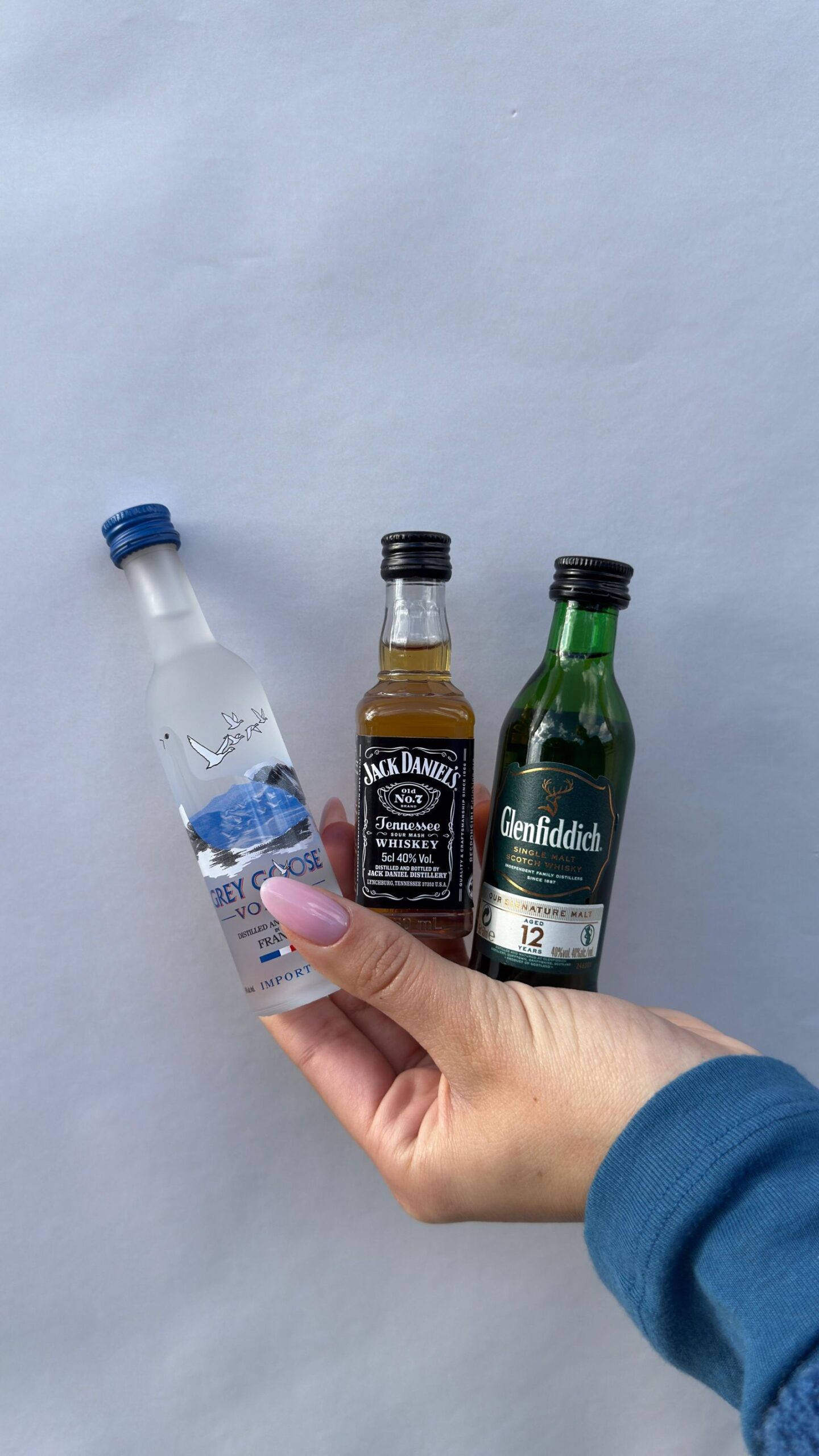 שלושה בקבוקי אלכוהול פרימיום מינאטורים לבחירה